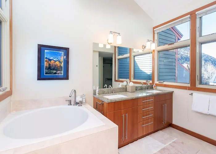 De 3-slaapkamer Spacious 3 Bedroom Condo Easy Walk To Grocery Store And Chairlift 7 Telluride villa ligt binnen 12 minuten loopafstand van Town Park en biedt een bubbelbad, voor een ontspannen verblijf. Dit vakantiehuis biedt uitzicht op de berg en nodigt gasten uit om Bear Creek Trail te bezoeken, binnen minder dan 1 km afstand.